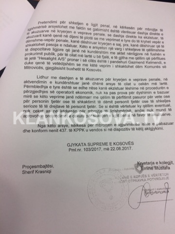 Klan Kosova ka siguruar dhe vendimin e Gjykatës Supreme, të cilin mund ta shihni të publikuar më poshtë: