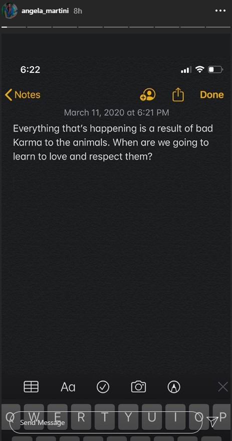 “Çdo gjë që është duke ndodhur është rezultat i Karmës ndaj kafshëve. Kur do të mësojmë t’i duam dhe trajtojmë ato me respekt”, u shpreh ajo.