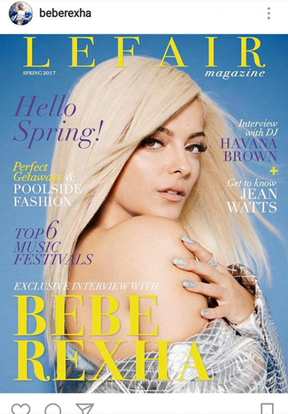 Këngëtarja së fundmi ka zënë ballinën e revistës amerikane “LeFair”. Një gjë të tillë e konfirmoi vetë Rexha e cila postoi kopertinën në rrjetin e saj social Instagram.
