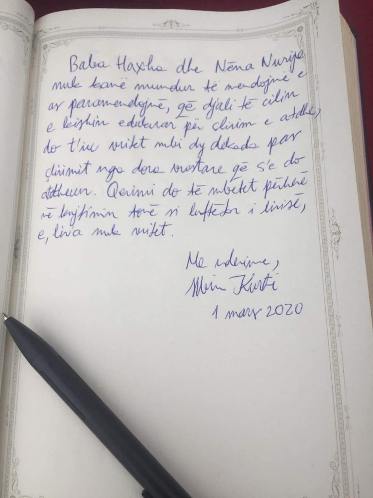“Baba Haxha dhe Nëna Nurije nuk kanë mundur të mendojnë e as paramendojnë, që djali të cilin e kishin edukuar për çlirim e atdhe, do t’iu vritet mbi dy dekada pas çlirimit nga dora vrastare që s’e do atdheun. Qerimi do të mbetet përherë në kujtimin tonë si luftëtar i lirisë, e liria nuk vritet”, ka thënë Kurti.