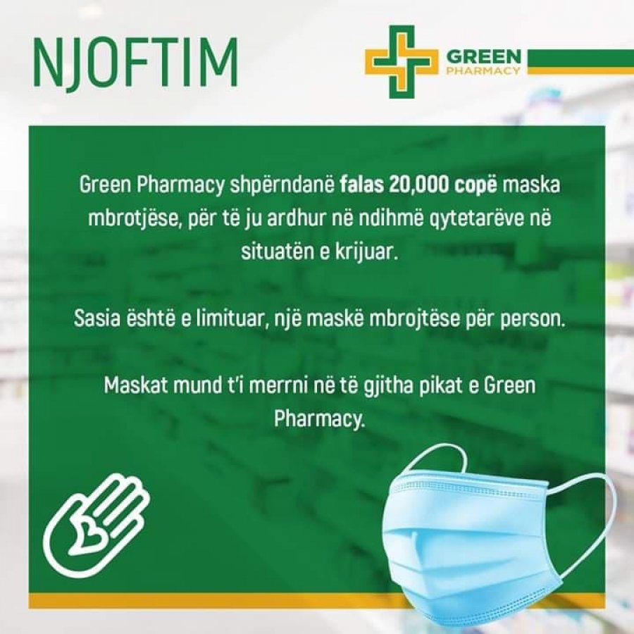Sipas njoftimit të Green Pharmacy, maskat mund ti merrni në cdo pikë të Green Pharmacy.