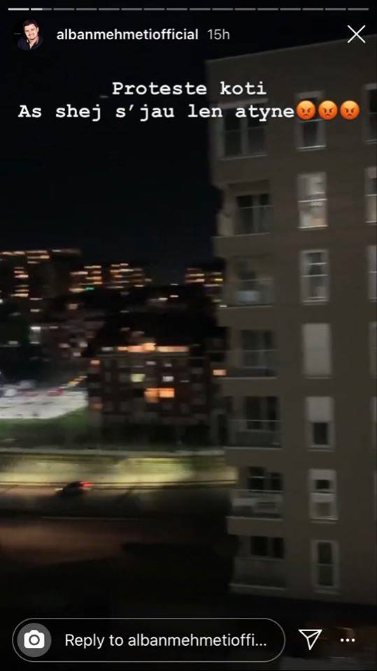 Alban Mehmeti në profilin e tij në Instagram, postoi një video ku shihen protestuesit nëpër ballkone dhe dritare.