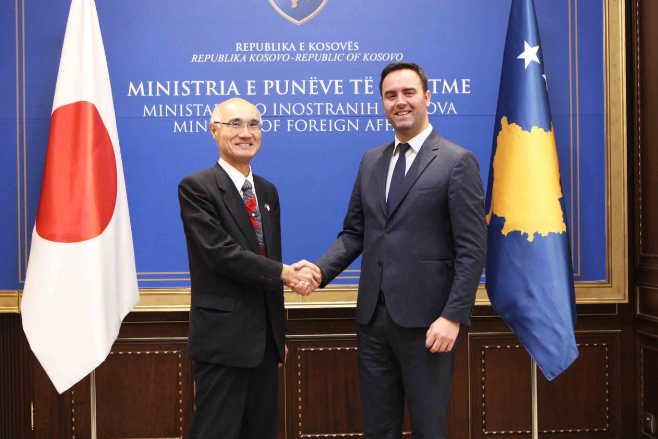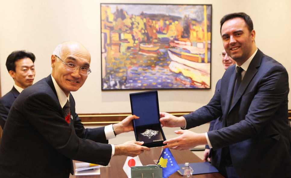 Në takim që ka mbajtur sot me ambasadorin e Japonisë në Kosovë, Akira Mizutani ka shtrënguar duart me njëri – tjetrin, shkruan Gazeta Insajderi.