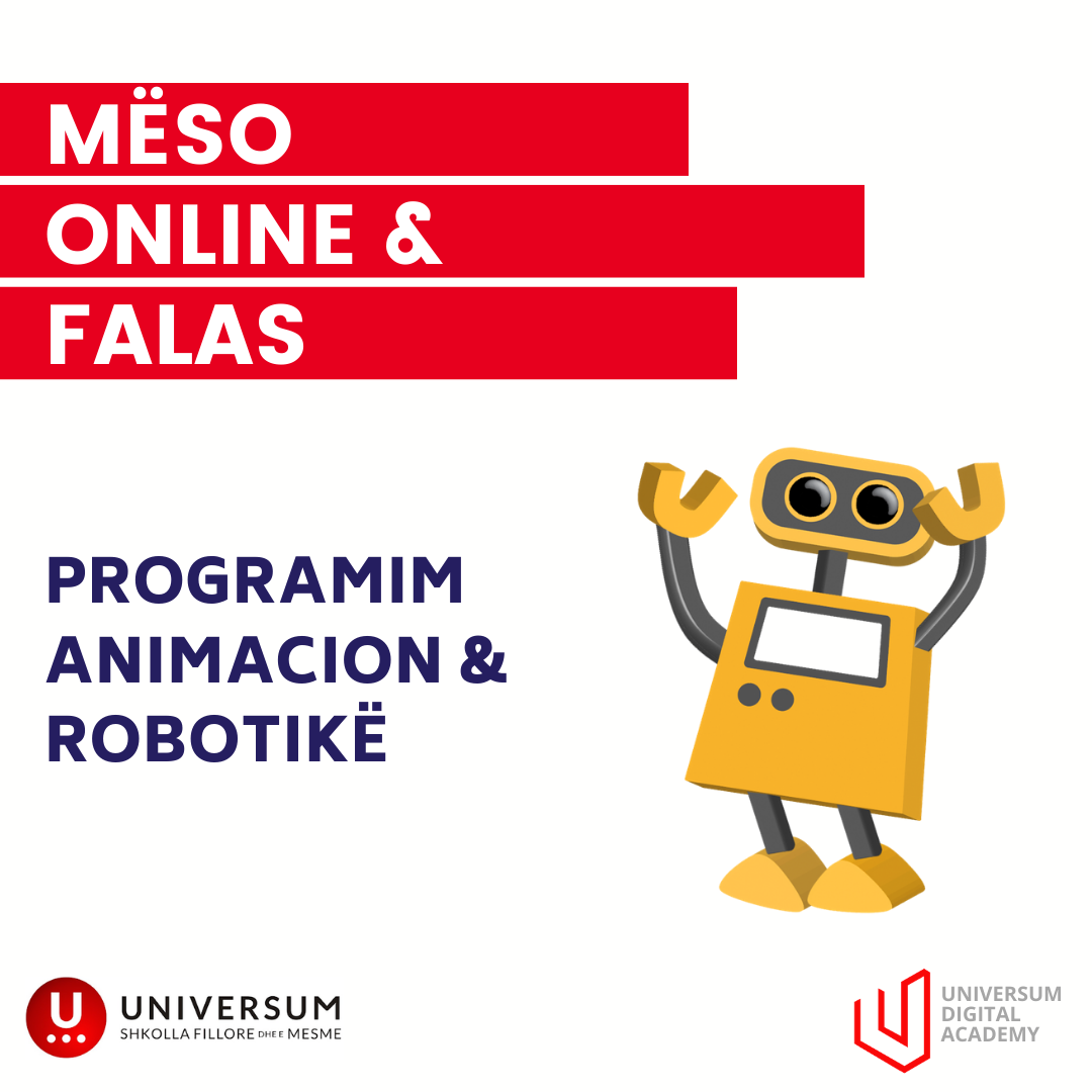 Shkolla Universum në bashkëpunim me Universum Digital Academy në këto ditë izolimi ofrojnë – Kurse Online dhe FALAS për fëmijë 7-15 vjeç. Kurset do të organizohen në fushën e Programimit, Animacionit dhe Robotikës.