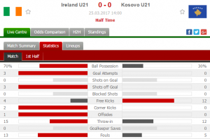 Përfaqësuesja e Kosovës U-21 po bën paraqitje dinjitoze në debutimin e saj në kualifikueset për Kampionatin Evropian, derisa është duke barazuar me rezultat 0-0 ndaj Republikës së Irlandës.