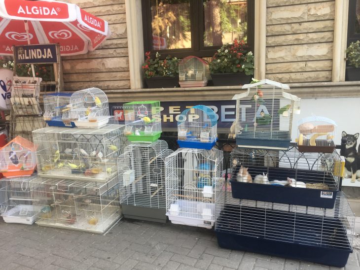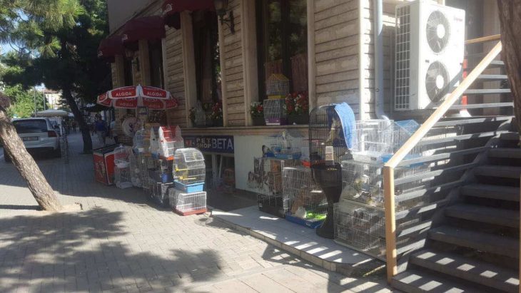 Dyqani i kafshëve shtëpiake në qendër të Prishtinës, “PetShopBeta” që nga ora se kur hap lokalin e deri në mbrëmje, ekspozimin e kafshëve e bënte jashtë lokalit.