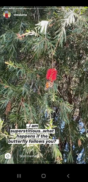Ndër shumë imazhe që ajo ka ndarë, këngëtarja zbulon se është shumë supersticioze meqë gjatë gjithë ditës kishte parë fluturën e njëjtë që i vinte pas. Madje ajo pyet edhe ndjekësit se ç’do të thotë kur një flutur të vihet pas.