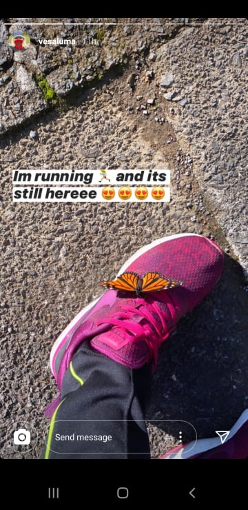 “Jam supersticioze…çfarë ndodh kur flutura të ndjek?” – shkruan Luma, mbi një imazh të shkrepur të fluturës. “Po vrapoj dhe është ende këtu.” – shkruan në një tjetër foto që këngëtarja ndau pak më vonë.