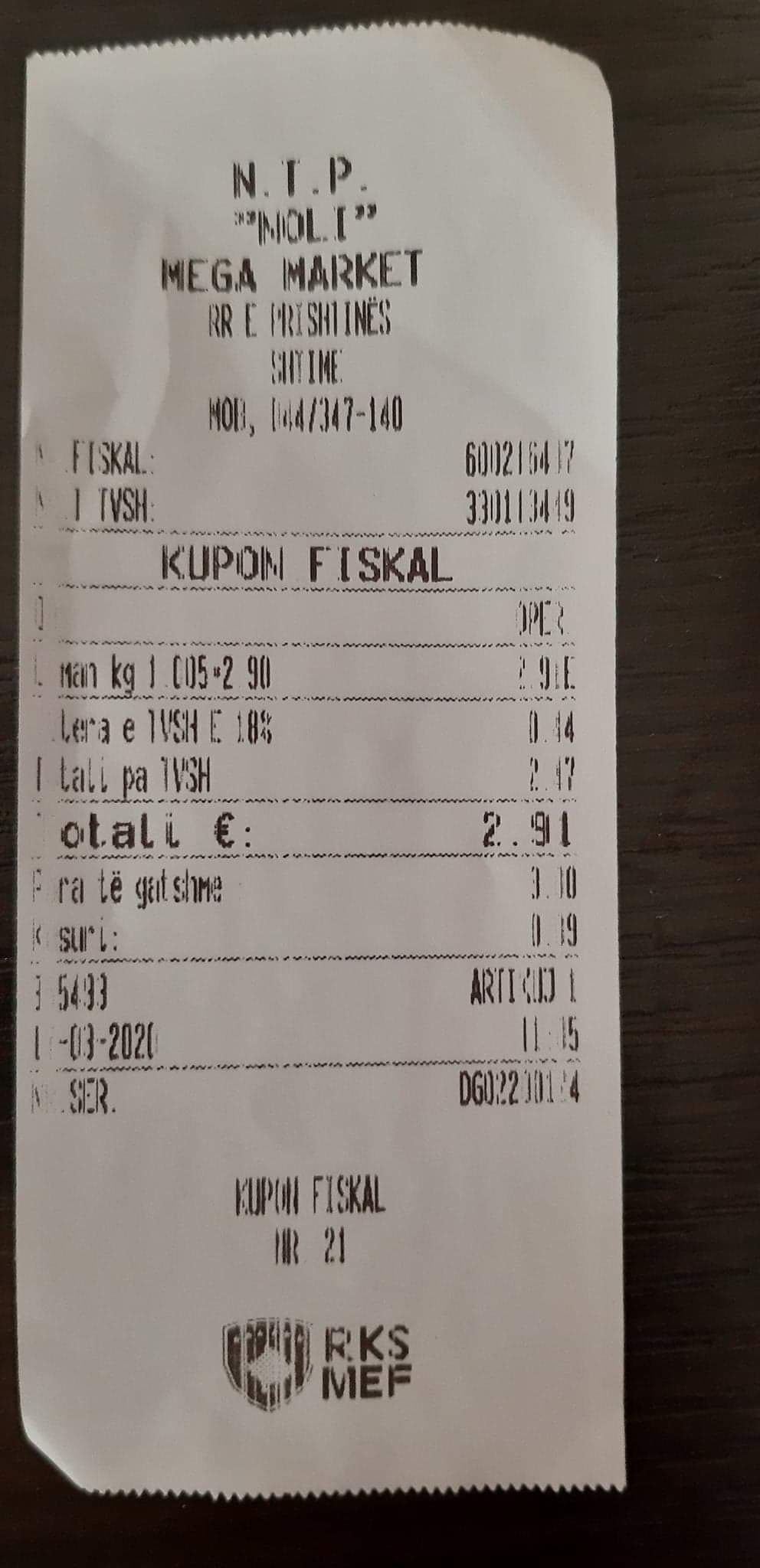 Qytetari, e ka dërguar edhe faturën në adresë të Gazetës Insajderi, ku ka sqaruar se ditë më parë 1 kilogram i limonave ka kushtuar rreth 1.60 deri 1.80 euro, ndërsa sot e ka blerë 2.91 euro.