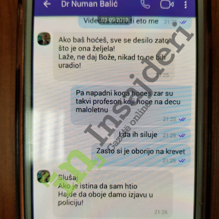 Gazeta Insajderi ka siguruar një letër që sipas M.M., babait të vajzës 17 vjeçare, e cila para disa ditësh e akuzoi ish-ministrin e Shëndetësisë, Numan Baliq se tentoi ta dhunonte, i ka dërguar asaj. Në këtë letër e cila fillon me fjalët “E dashura dhe e preferuara ime S., e vetmja në botë”, shkruan se pas një grindje që kishin pasur në praninë e nënës së saj, ai është brengosur dhe se nuk do të qetësohet derisa ajo t`i lajmërohet. Prindërit pretendojnë se letra iu dërgua vajzës së tyre në shkollë. M.M thotë se para kësaj letre, nëna e vajzës (gruaja e tij) kishte shkëmbyer disa mesazhe në Viber me Baliq. Por i kontaktuar nga Insajderi, Numan Baliq e ka mohuar se ka shkruar këto mesazhe, ai thotë se ato janë montazhë.