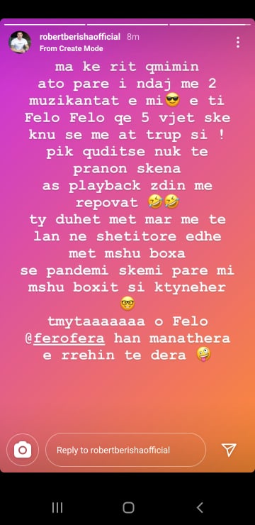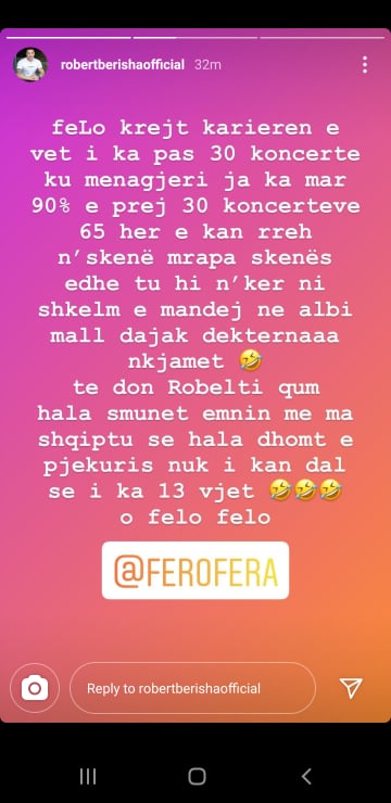 Ky do të ishte edhe fundi i këtij sherri virtual mes Feros dhe Robertit, por që më pas të dy fshinë postimet e tyre nga llogaritë përkatëse në Instagram.