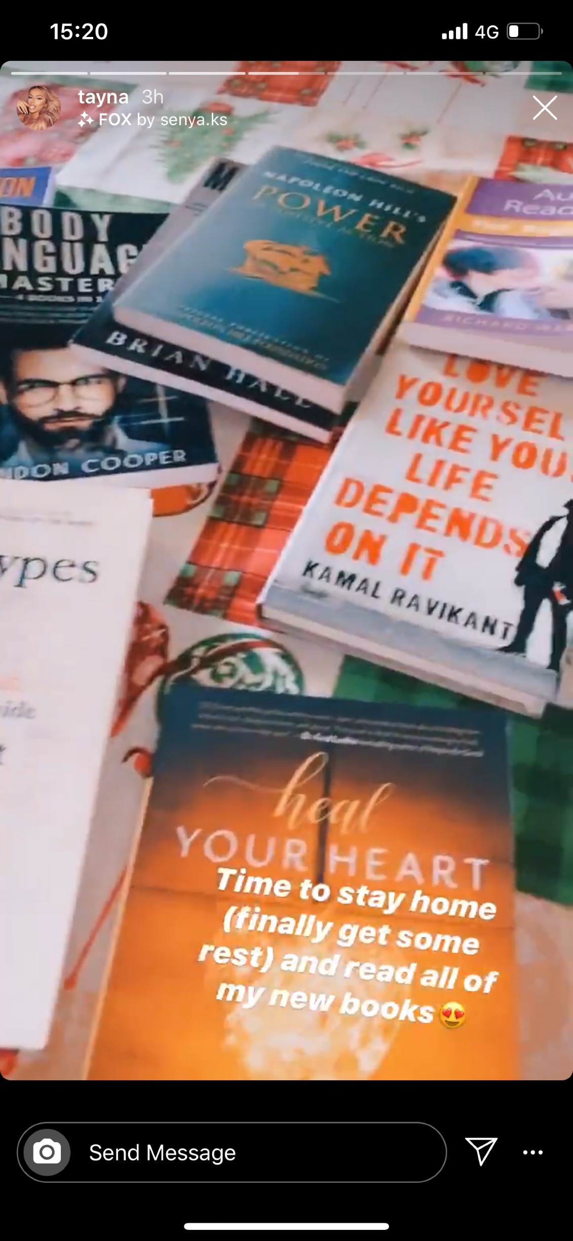 “Koha për të qëndruar në shtëpi (më në fund pak pushim) dhe të lexojë gjithë librat e ri”, ka shkruar ajo.